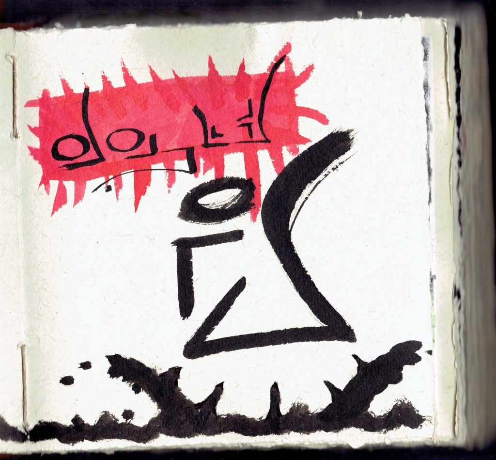 In 2012 I started experimenting with inks, calligraphy, and collage in a big leather book of square handmade paper. It was a years-long project that never really ended.