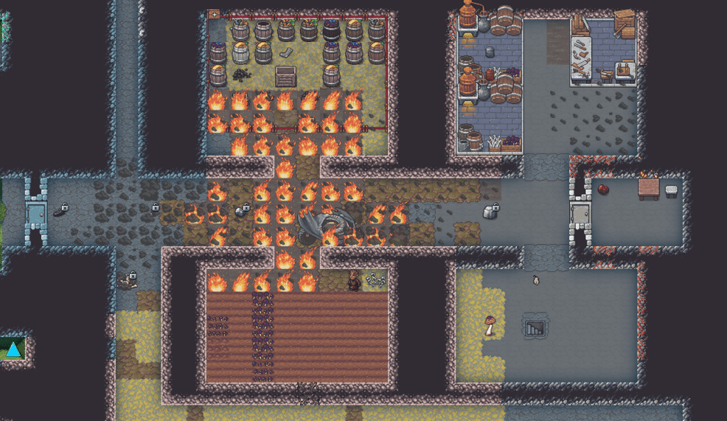 So they made cups, but they stayed depressed. This time they were all occasionally thinking about a friend’s decay. It took me a few hours to discover the corpse of their friend, in the path between the fortress entrance and the river that served as a water supply. They had all been walking past the decomposing body every time they needed a drink, since I hadn’t learned about brewing mushroom alcohol or building barrels yet. Or coffins for that matter.